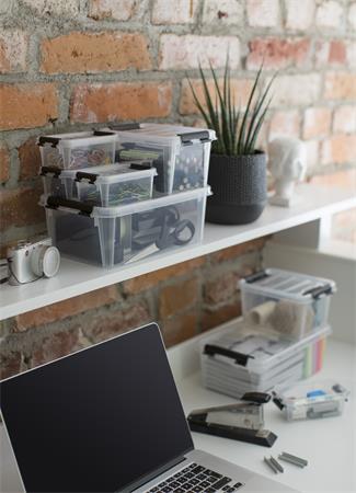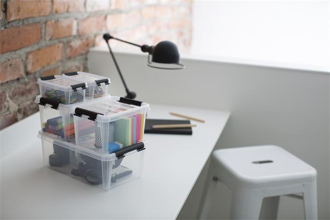 Úložný box, plastový, 1,5 l, čierne úchytky, SMARTSTORE "Classic 1,5", priehľadný