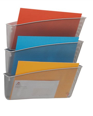 Nástenný odkladač, 3 dielny, drôtený, ALBA, strieborný