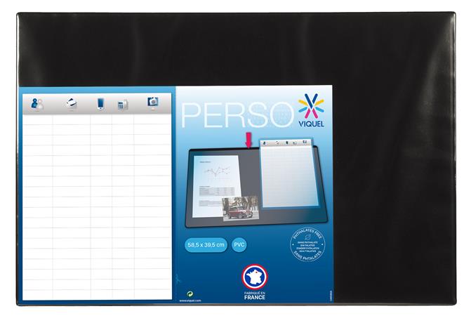 Podložka na stôl, s priehľadným vreckom, VIQUEL, čierna