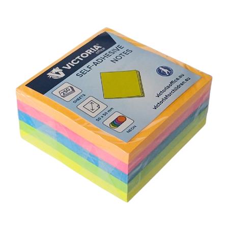 Samolepiaci bloček, 50x50 mm, 250 listov, VICTORIA OFFICE, neónové farby