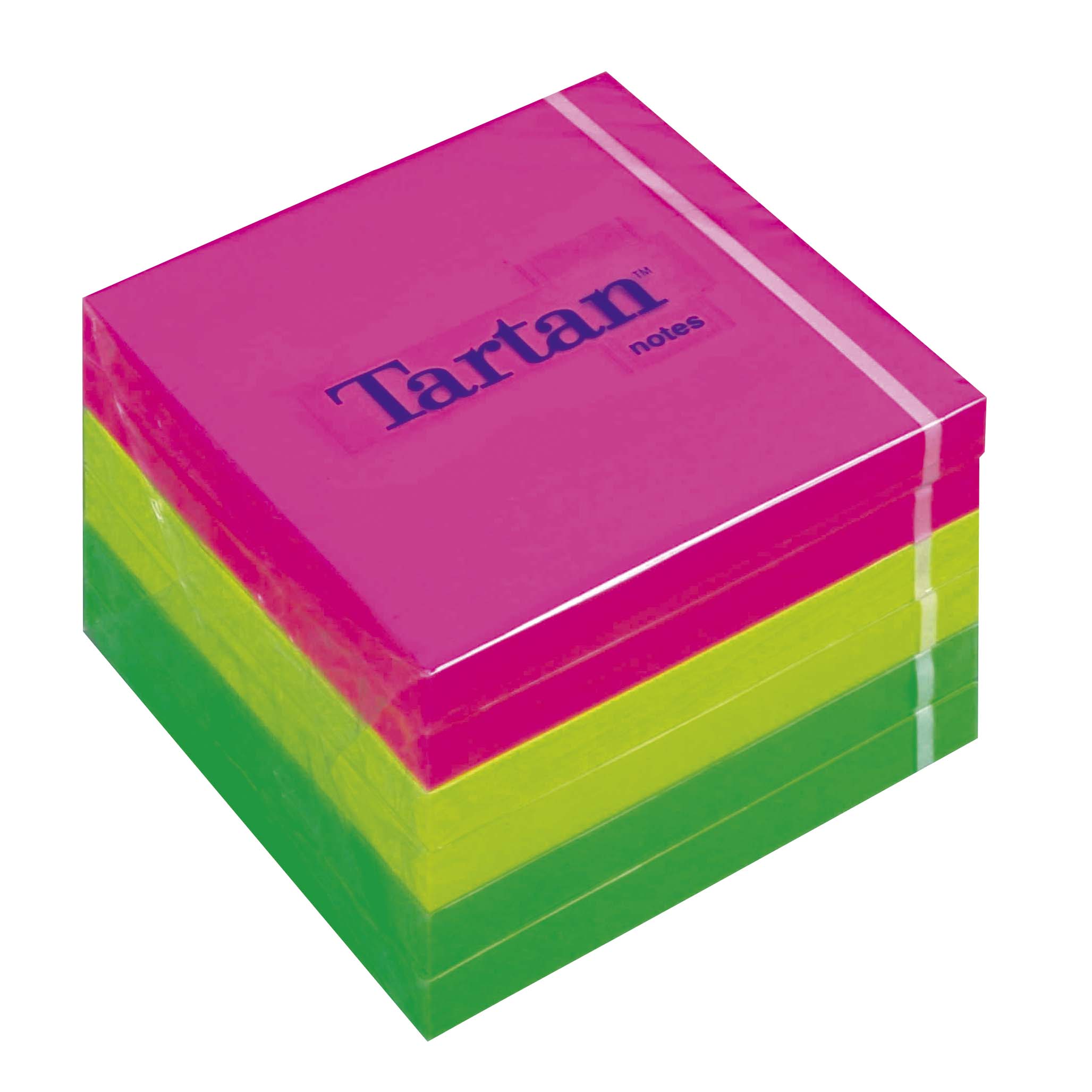 Samolepiaci bloček, 76x76 mm, 100 listov, 6 bločkov/bal, TARTAN, mix neónové farby