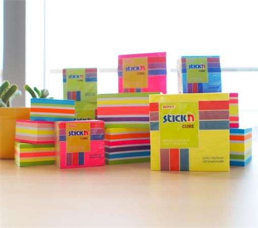 Samolepiaci blok, 76x76mm, 400 listov, STICK N, dúhové neónové farby