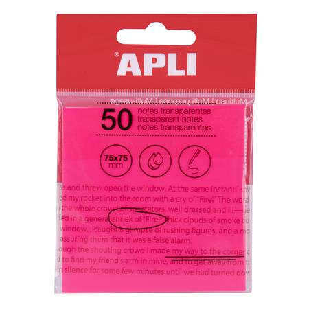Samolepiaci bloček, priehľadný, vodeodolný, 75x75 mm, 50 listov, APLI, ružová