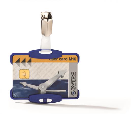 Držiak na identifikačné karty, 54 x 85 mm, s klipom, DURABLE, modrá