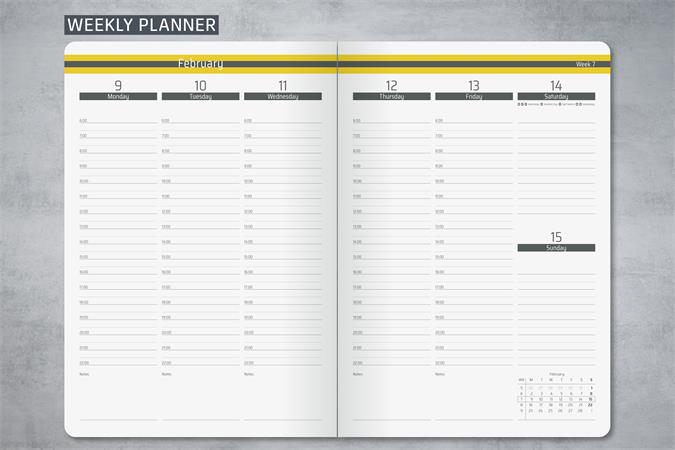 Diár, A5, týždenný, 2026, tvrdá obálka, SIGEL "Linescape", sivý-žltý