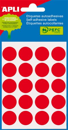 Etikety, 19 mm okrúhle, ručne popisovateľné, farebné, APLI, červené, 100 etikiet/bal