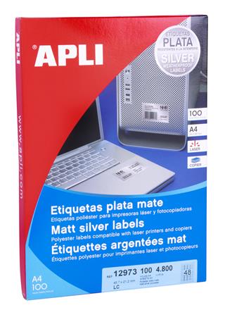 Etikety, 45,7x21,2 mm, polyester, odolné voči poveternostným podmien., zaoblené rohy, APLI, strieborné, 4800 etikiet/bal