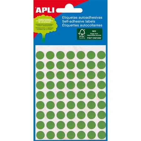 Etikety, 8 mm okrúhle, ručne popisovateľné, farebné, APLI, zelené, 288 etikiet/bal