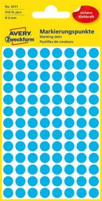 Etikety, okrúhle, priemer: 8 mm, AVERY ZWECKFORM, modré, 416 etikiet/bal