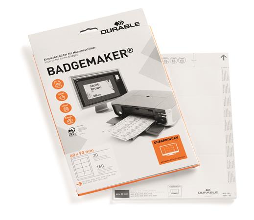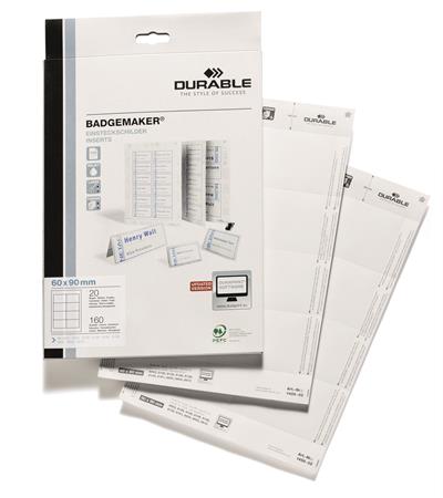Mikroperforovaný betétový list s certifikátom PEFC vo formáte A4.-pre profesionálne označovanie menoviek a identifikačných štítkov-BADGEMAKER® na stolné menovky je vhodný aj ako samostatný stolný stojan na menovky-rozmery betétového listu: 60 x 90 mm-160 ks / balenie