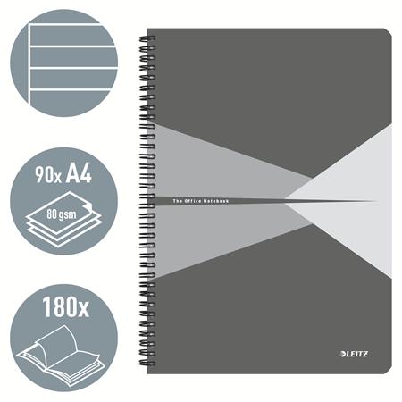 Blok, A4, linajkový, 90 listov, laminovaná kartónová obálka, LEITZ "Office", sivá