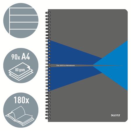 Blok, A4, linajkový, 90 listov, laminovaná kartónová obálka, LEITZ "Office", sivá-modrá