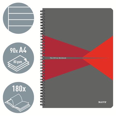 Blok, A4, linajkový, 90 listov, PP obálka, LEITZ "Office", sivá-červená