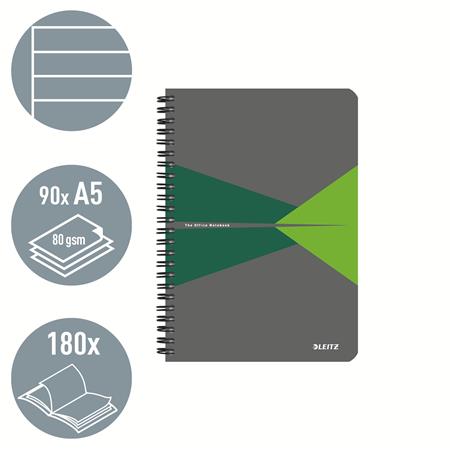 Blok, A5, linajkový, 90 listov, laminovaná kartónová obálka, LEITZ "Office", sivá-zelená