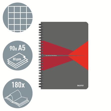 Blok, A5, štvorčekový, 90 listov, laminovaná kartónová obálka, LEITZ "Office", sivá-červená