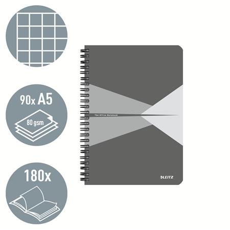 Blok, A5, štvorčekový, 90 listov, PP obálka, LEITZ "Office", sivá