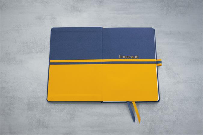Diár, exkluzívny, A5, linajkový, 88 listov, tvrdá obálka, SIGEL "Linescape", modrá-žltá