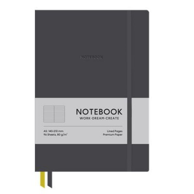 - formát A5 - uzatvárateľný na gumičku - textilná záložka v dvoch farbách - 96 listov - linajkový - papier krémovej farby - 80 g/m2