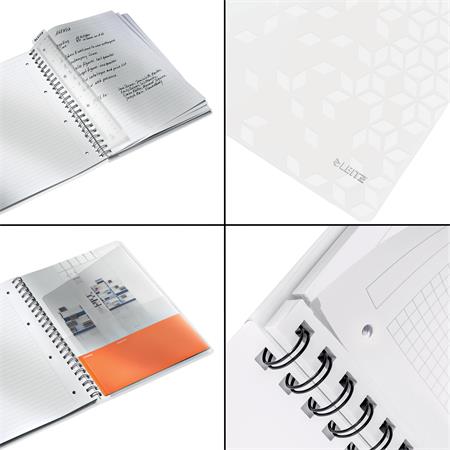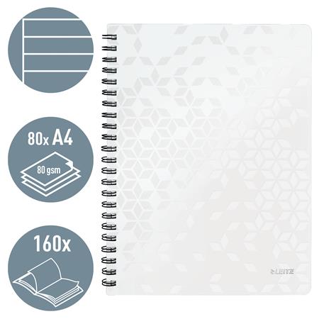 Špirálový zošit, A4, linajkový, 80 listov, LEITZ "Wow", biela