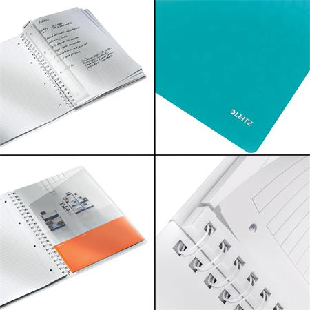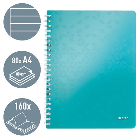 Špiralový zošit, A4 linajkový, 80 listov, LEITZ "Wow", ladovo modrý