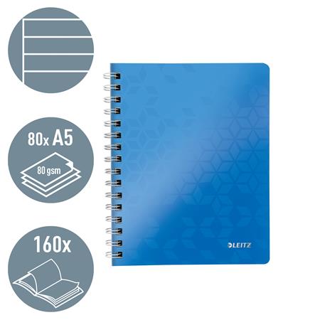 Špirálový zošit, A5, linajkový, 80 listov, LEITZ "Wow", modrá