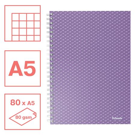 Špirálový zošit, A5, štvorčekový, 80 listov, ESSELTE "Colour`Breeze", levanduľa