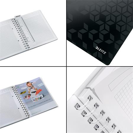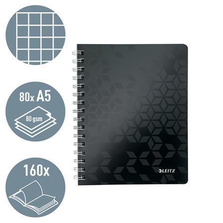 Špirálový zošit, A5, štvorčekový, 80 listov, LEITZ "Wow", čierna