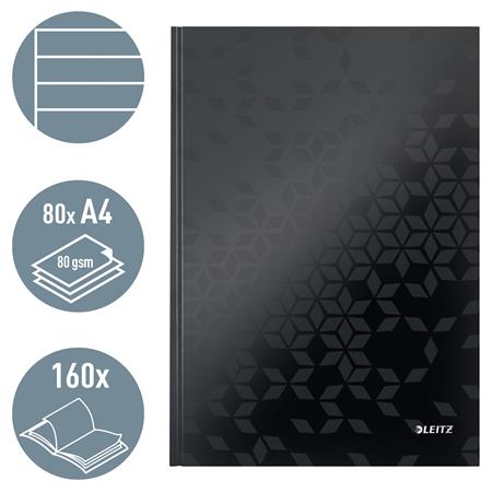 Záznamová kniha, A4, linajková, 80 listov, tvrdá obálka, LEITZ "Wow", čierna