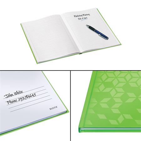 Záznamová kniha, A4, linajková, 80 listov, tvrdá obálka, LEITZ "Wow", zelená