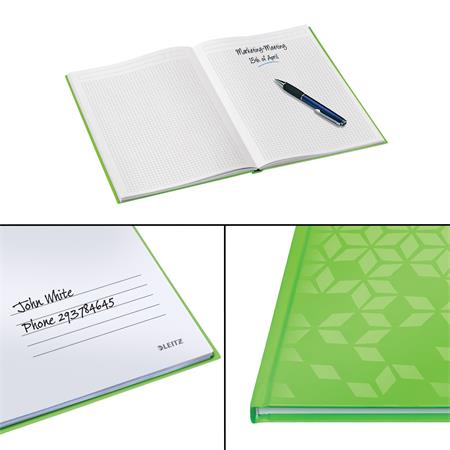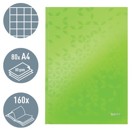Záznamová kniha, A4, štvorčeková, 80 listov, tvrdá obálka, LEITZ "Wow", zelená