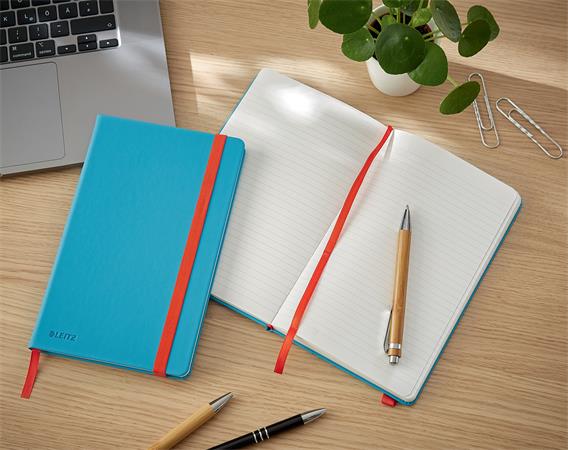 Záznamová kniha, A5, linajková, 80 listov, tvrdá obálka, LEITZ "Cosy Soft Touch", pokojná modrá