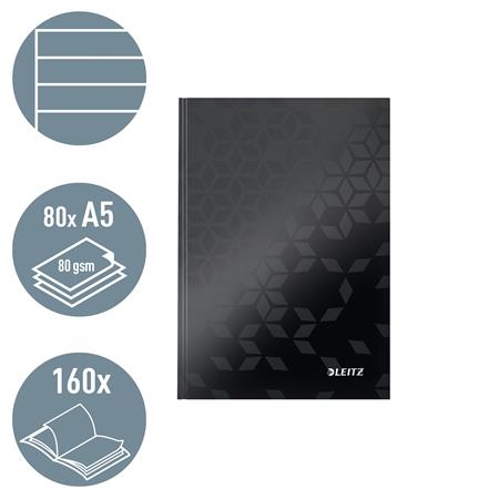 Záznamová kniha, A5, linajková, 80 listov, tvrdá obálka, LEITZ "Wow", čierna