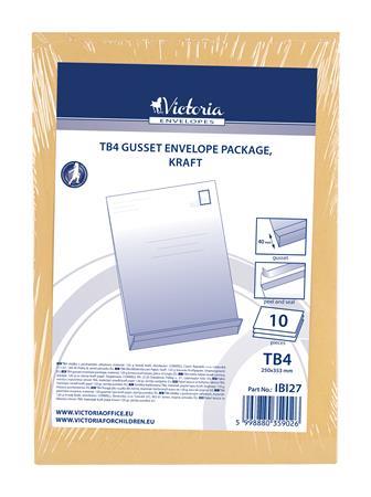 Obálky TB4, s postranným záhybom, silikónové, 40 mm spodok, VICTORIA PAPER, hnedý kraft papier