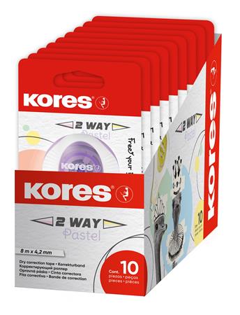 Korekčný roller, 4,2 mm x 8 m, KORES "2WAY Pastel", mix pastelových farieb