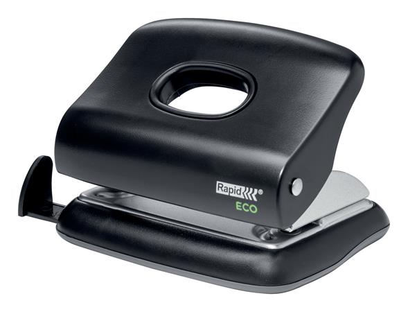 Kompaktný a pritom výkonný dierovač vyrobený zo 100% recyklovaného priemyslového plastu, s obalom vyrobeným z recyklovaného kartónu.