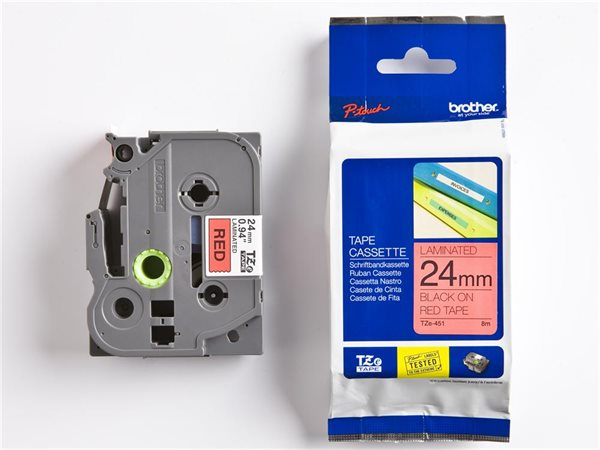 Páska do štítkovača, 24 mm x 8 m, BROTHER, červená-čierna