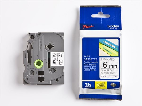 Páska do štítkovača, 6 mm x 8 m, BROTHER, "TZe-111" priehľadná-čierna