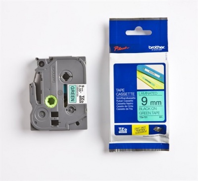 Páska do štítkovača, 9 mm x 8 m, BROTHER, zelená-čierna