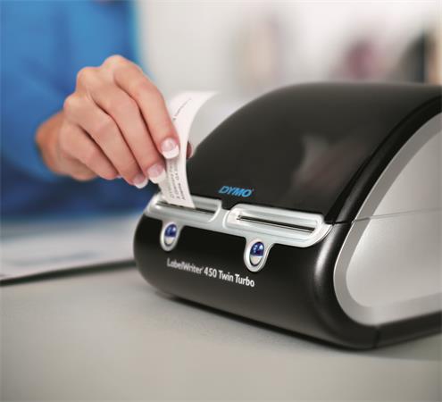 Vyššia rýchlosť štítkovanie a efektivita zasielanie pošty. Tlačiareň DYMO ® LabelWriter ™ 450 Twin Turbo obsahuje dve rolky štítkov, vďaka ktorým vytvoríte viac štítkov a vybavíte viac zásielok v kratšej dobe. Tlač adresných štítkov bez nutnosti výmeny roliek so štítkami. Alebo rýchlejšiu tlač veľkých sérií vložením dvoch roliek rovnakých štítkov - tlačiareň DYMO ® LabelWriter ™ 450 Twin Turbo automaticky prepne na druhú úlohu, akonáhle sa prvá rola spotrebuje. Tlač až 71 * štítkov za minútu. Rozlúčte sa s problémami s hárky štítkov as drahou atramentovou náplňou či tonerom. Využite dodaný softvér na tlač štítkov priamo z textu v obľúbených softwarových programoch a nielen to. * 4-riadkový adresný štítok.