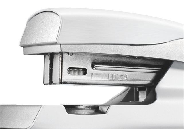 Pevná a spoľahlivá celokovová zošívačka. V dômyselných farbách radu Leitz Style, povrch v dizajne brúsenej ocele a s patentovanou zošívacou technológiou. Základňa z kovu, rameno kov/plast. Protišmykové plastové dno proti poškodeniu nábytku.