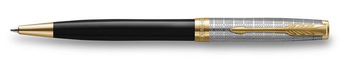 Guľôčkové pero, 1 mm, telo pera: kovová čierna, zlatý klip, PARKER "Royal Sonnet Premium", čierna