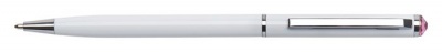Guľôčkové pero, Crystals from SWAROVSKI®, s ružovým krištáľom, 13 cm, ART CRYSTELLA, biela