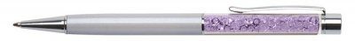 Guľôčkové pero, krémovo biele, s orgovánovo fialovým SWAROVSKI® kryštálom v hornej časti, 14 cm, ART CRYSTELLA®
