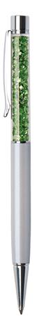 Guľôčkové pero, krémovo biele, s zeleným SWAROVSKI® kryštálom v hornej časti, 14 cm, ART CRYSTELLA®