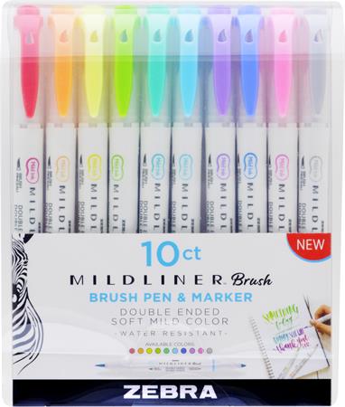 Fixky, sada, 0,5/0,7 mm, s dvomi hrotmi, ZEBRA "Mildliner Brush&Marker", 10 rôznych farieb