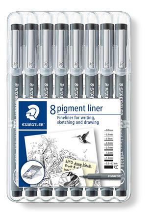 Liner, sada, 8 rôznych hrúbok, STAEDTLER "Pigment liner 308", čierna
