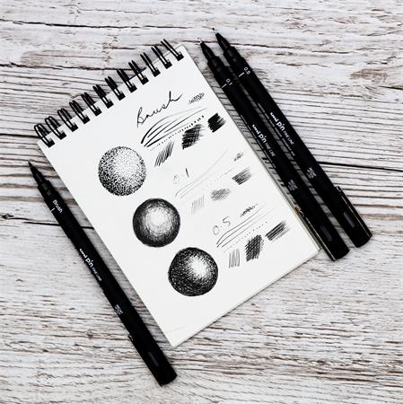 UNI PIN je popisovač na kreslenie, ktorú preferujú architekti, umelci a grafickí dizajnéri. 0,5 mm-ový PIN je ideálny pre jemné detaily a voľné tieňovanie. Široká škála veľkostí hrotu PIN vám umožňuje vytvárať ostré, čisté línie a dokonalé techniky, ako je bodkované tieňovanie, šrafovanie a tieňovanie.