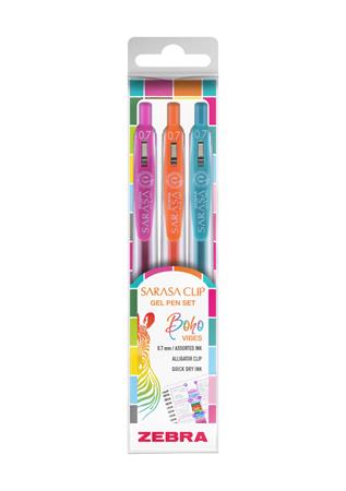 Sada gélových pier Sarasa Clip v troch kusoch „Boho Vibes“ s jedinečnými farebnými kombináciami a veselým balením určite vynikne medzi ostatnými písacími potrebami.