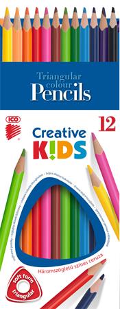 Farebné ceruzky, sada, trojhranné, ICO "Creative kids", 12 rôznych farieb
