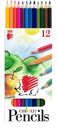 Farebné ceruzky, šesťhranné, ICO "Ježko", 12 farieb